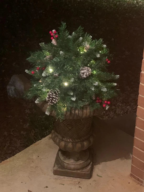 Pre-lit Artificial Christmas Tree Urn Filler ,Weatherproof sparkle for entryways and patios